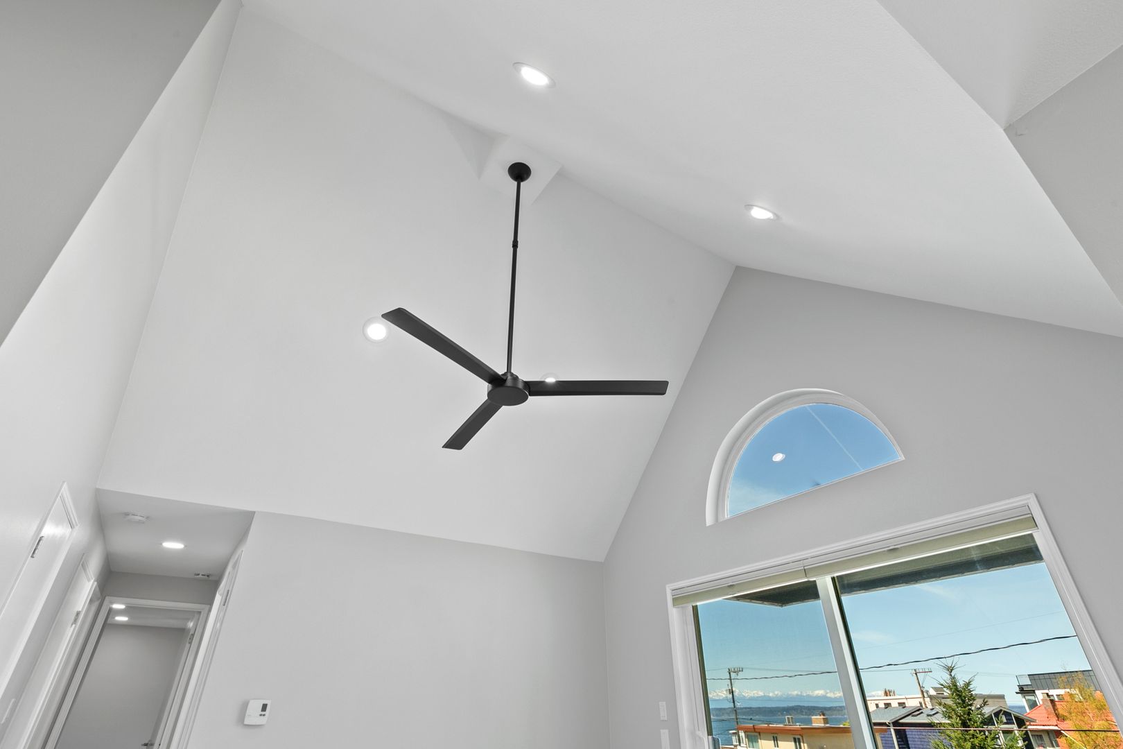 • Large windows, vaulted ceilings, and ceiling fans for fresh, bright, breezy spaces