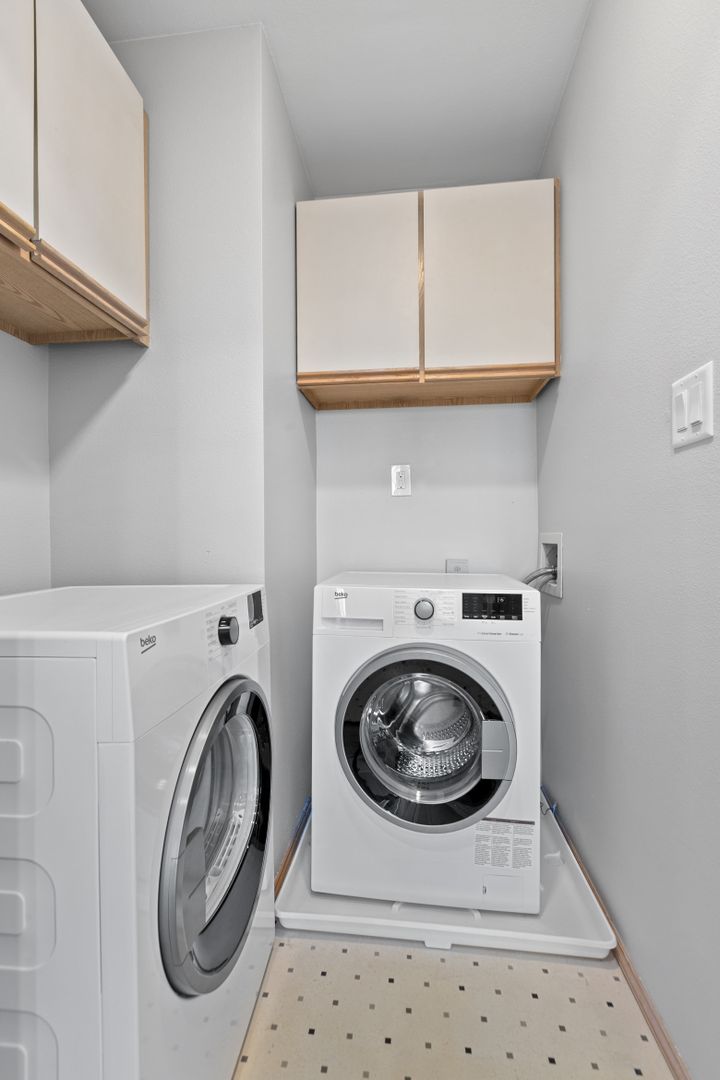 • Separate laundry area w/ front-loading washer/dryer and extra storage