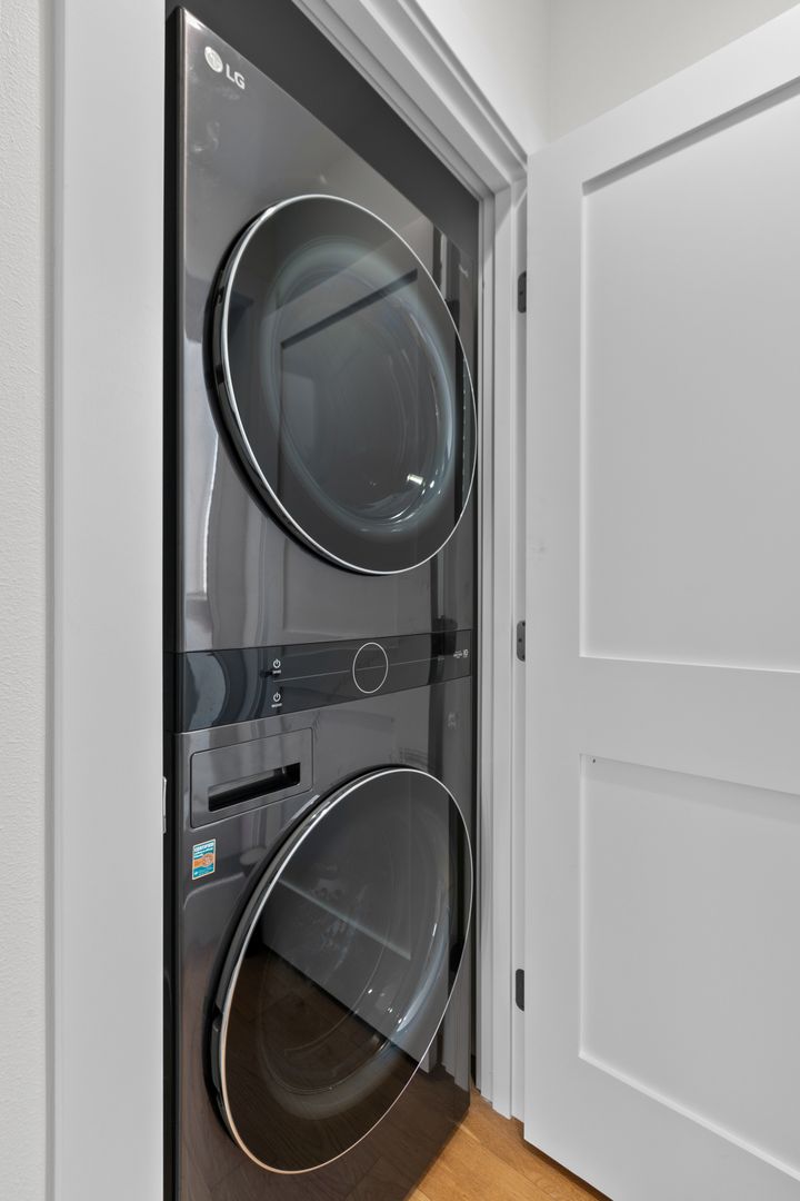 • Upper floor separate laundry closet w/ full-size front-loading washer and dryer