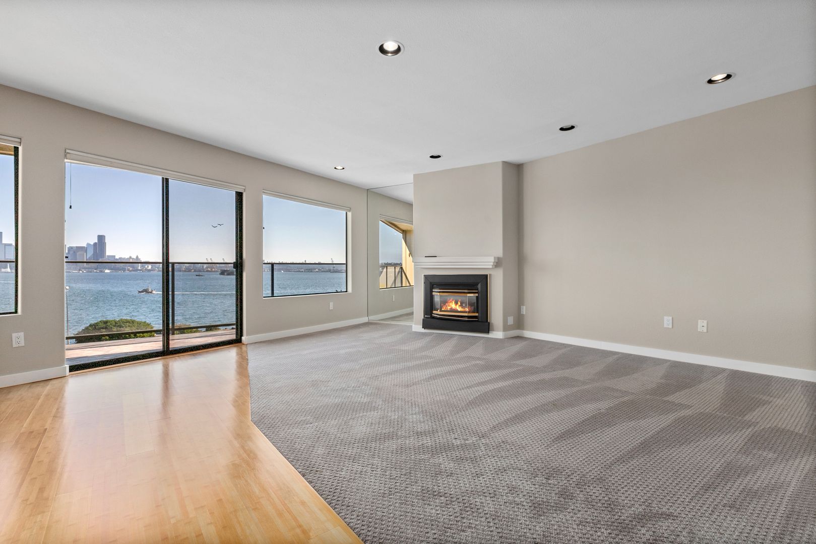 This very rare extra large 2 bed / 2 bath condo on Alki has it all. Bright, spacious, and inviting, the open floor plan is perfect for entertaining! Large wall-to-wall windows bathe this home in natural light. Generous recessed lighting ensures year-round brightness. Gather with friends and family in the open living areas to celebrate in style, or cozy up to the remote-controlled gas fireplace with a good book in your quieter moments. When the sunny weather beckons, the large deck offers plenty of room for your BBQ and patio furniture.