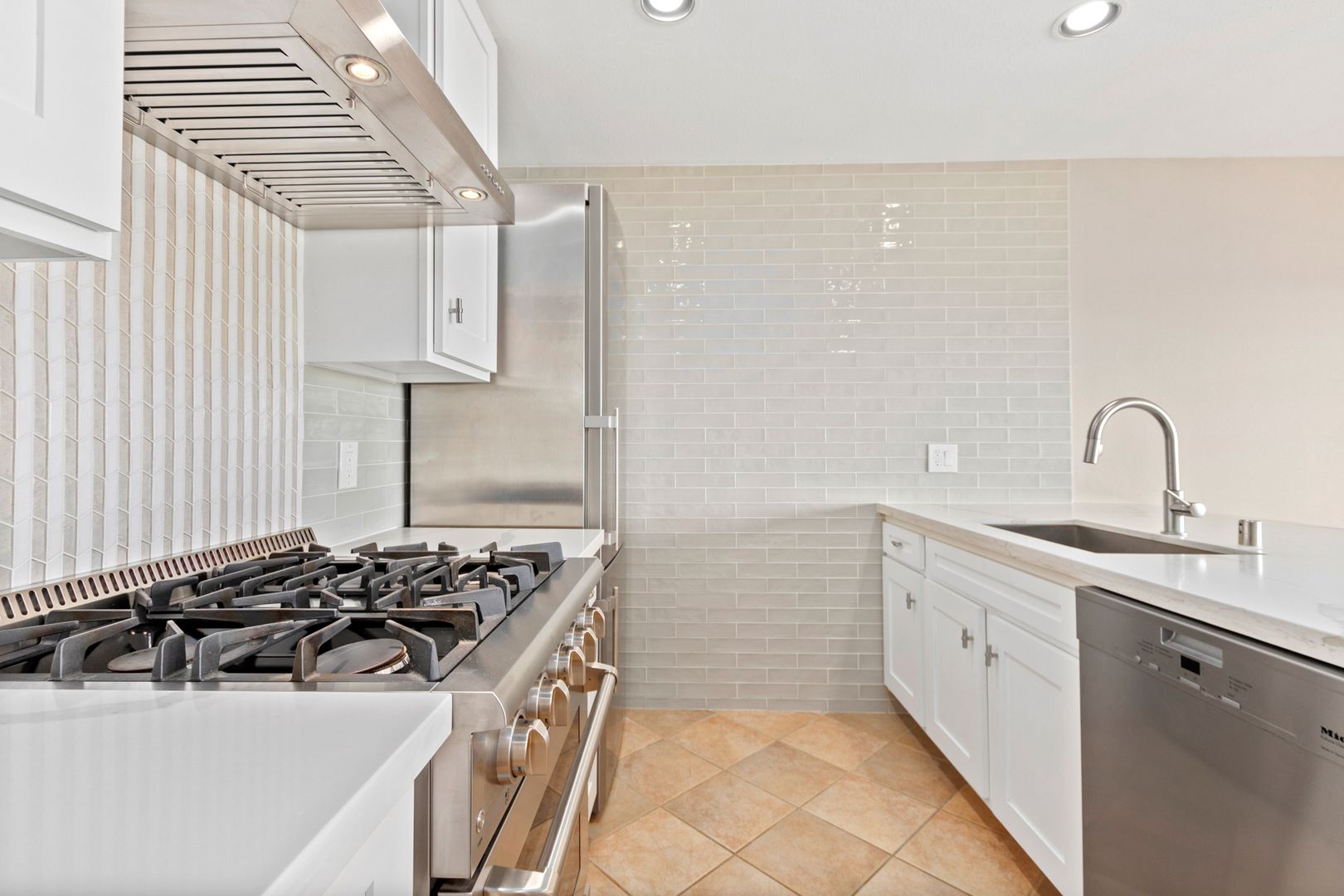 • Professional Stainless Steel Appliances including High Performance Gas Range and Exhaust Hood, Liebherr Refrigerator and Miele Dishwasher